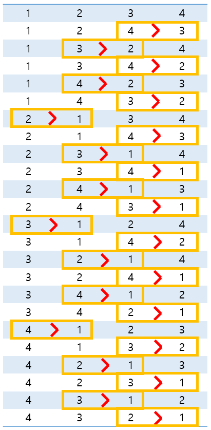 // 왼쪽 원소(기준) > 오른쪽 원소