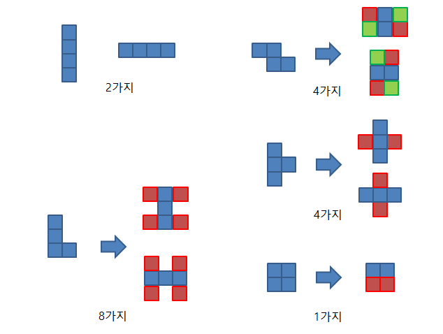 : 각 형태에 마다 나올 수 있는 모습을 고려한다. (총 19가지)